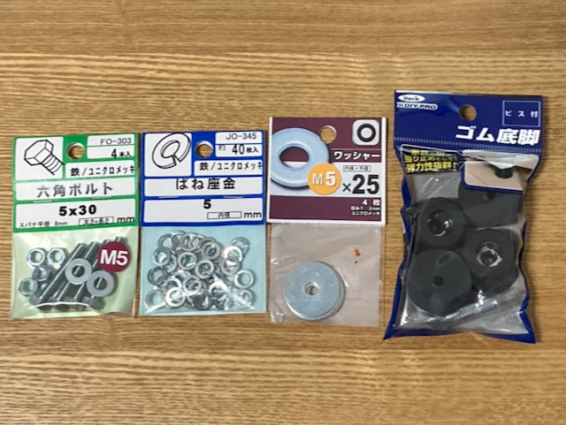 しかし僕の場合はゴム底脚が見つからず、ホームセンターをハシゴした挙げ句にこれだけAmazonで買いました。