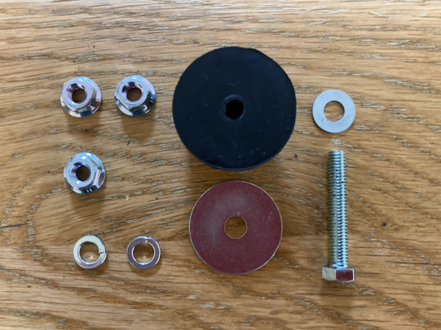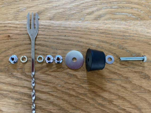 スペーサーはイス用のゴム底脚とM5のボルト/ナットを組み合わせて使っています。