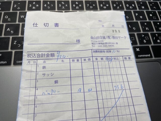 ちなみに3年前の2018年に名古屋の業者に買い取ってもらったときは95円/kgという買取価格でした。