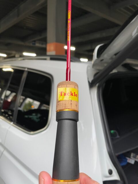 子どもは初めての自分のロッドなので早速フリフリしてます。