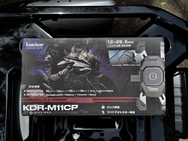 近くの駐車場に移動して、スマホホルダーを取り付けました。