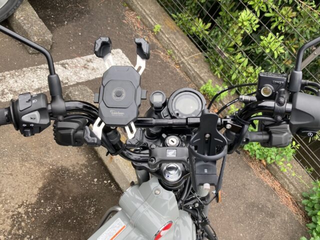 しかしハンドルブレースにスマホホルダーとドリンクホルダーの2つが付いていると、ゴチャゴチャ感があります。