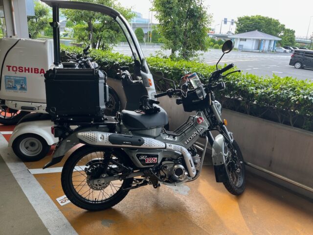 モペットはシティーコミューターとして使っていたので信号待ちで水分補給していましたが、ハンターカブはある程度のロングライドが多いこともあって、水分補給は休憩時にすることが多いです。