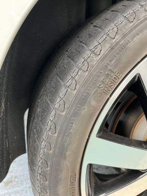 チンチュラートで走行性能の不安を覚えることはありませんでしたが、7年・6万キロ経過しているためサイドウォールのヒビが目立つようになりました。
