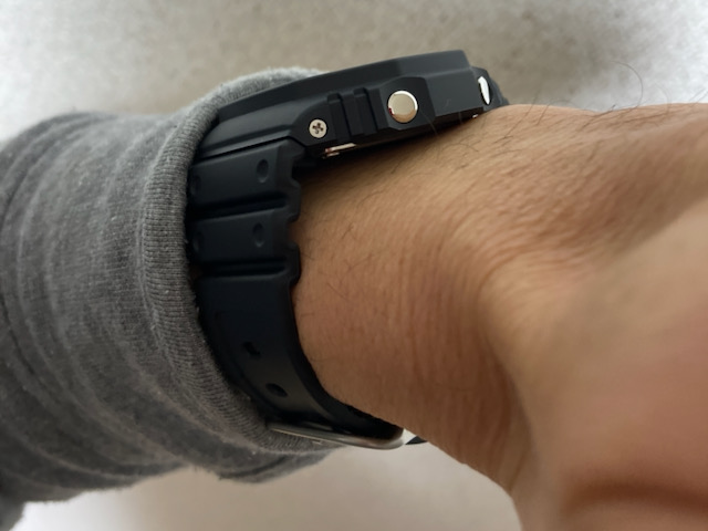 特に僕は腕周りが15.5cmと細い方なので、通常サイズのG-SHOCKだと腕に余る感じになってしまいます。